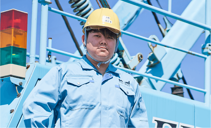 元々、大きな重機に乗る仕事に憧れていました!職場見学でクレーンに乗せてもらい「これに乗って仕事をしたい!」と思ったのが決め手ですね。
